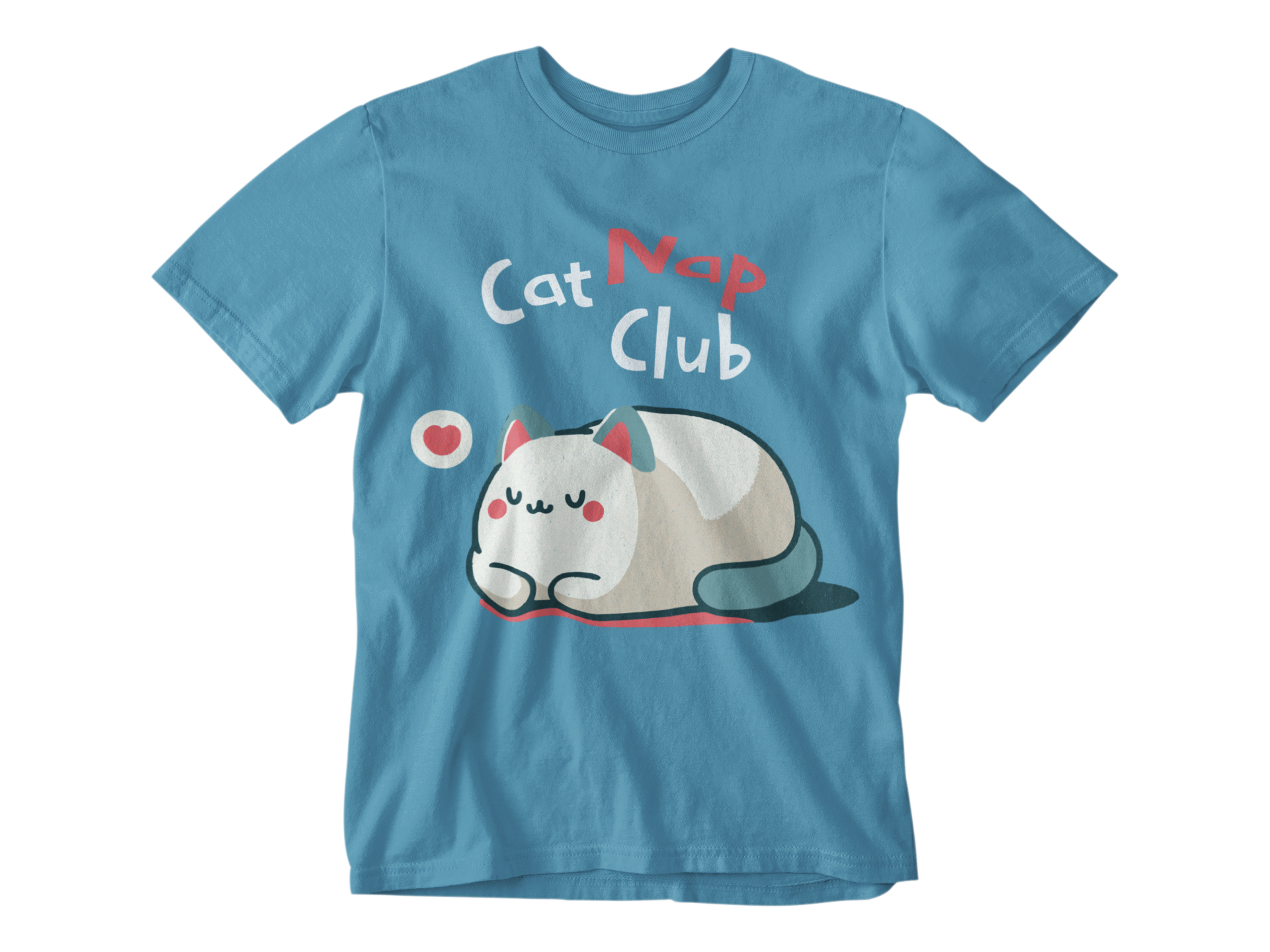 Welcome to the ultimate chill zone. The "Cat Nap Club" tee is made for lovers of lazy afternoons, soft pillows, and feline-style relaxation. Featuring an adorable cartoon cat mid-nap with heart cheeks and gentle pastels, this design is the definition of cozy energy.