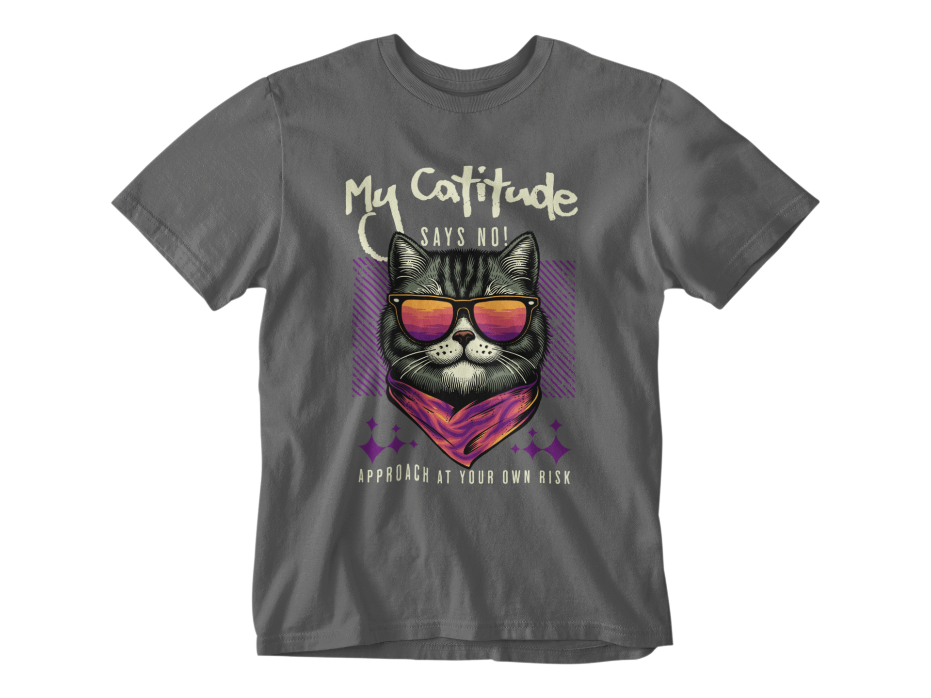 This bold feline design is for those who walk their own path, with a tail high and zero apologies. Featuring a cool cat with sunset shades and a fierce bandana, this shirt is a stylish warning to the world: boundaries exist, and they're feline-enforced.