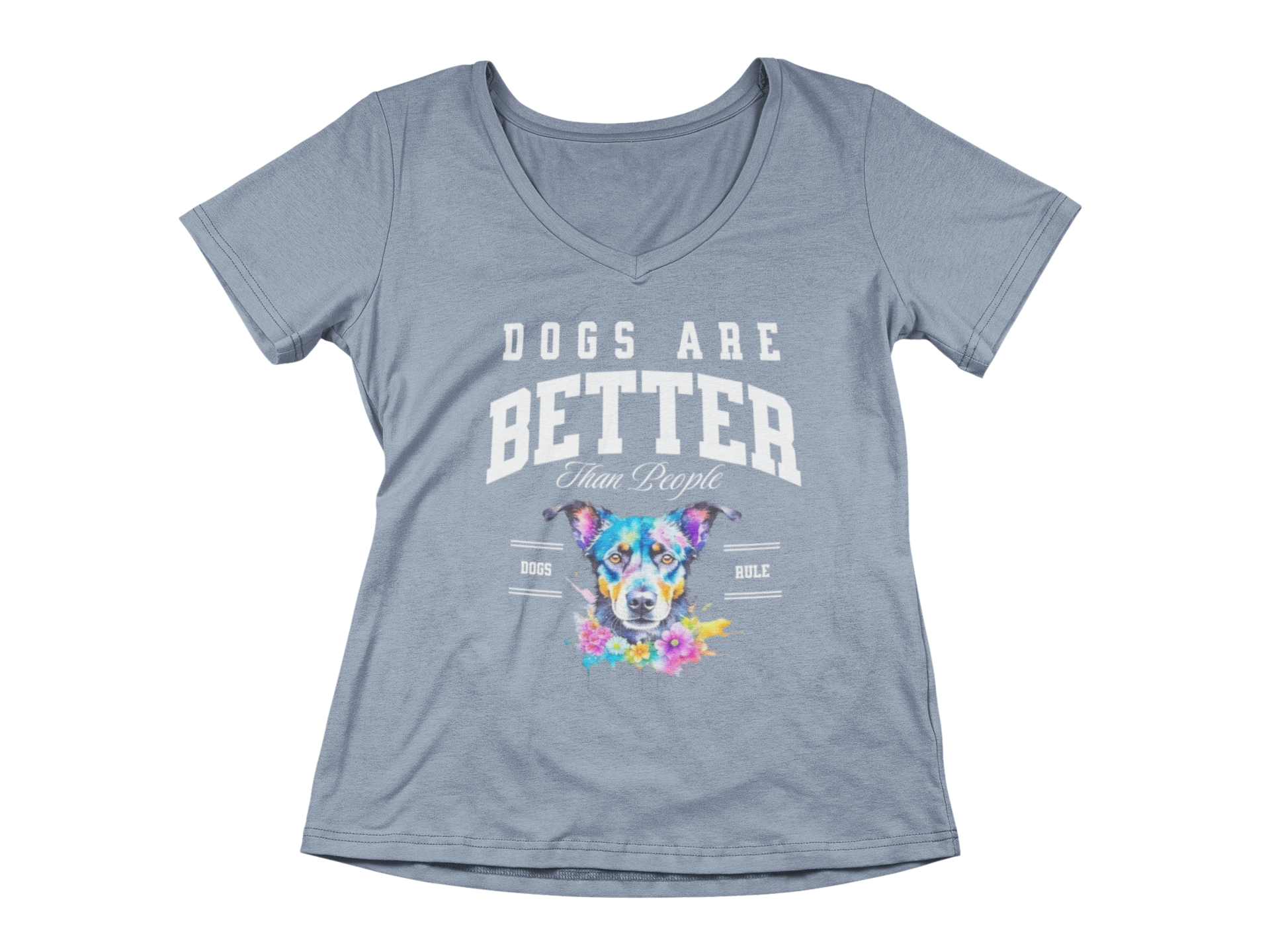 Let’s stop pretending. Dogs are loyal, loving, and always happy to see you—unlike most people. This bold tee says what every dog owner is thinking, featuring a colorful, watercolor-style dog illustration and varsity-style lettering that brings serious bark-and-pride energy.