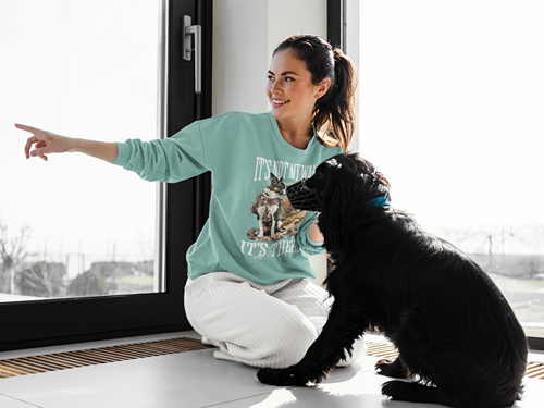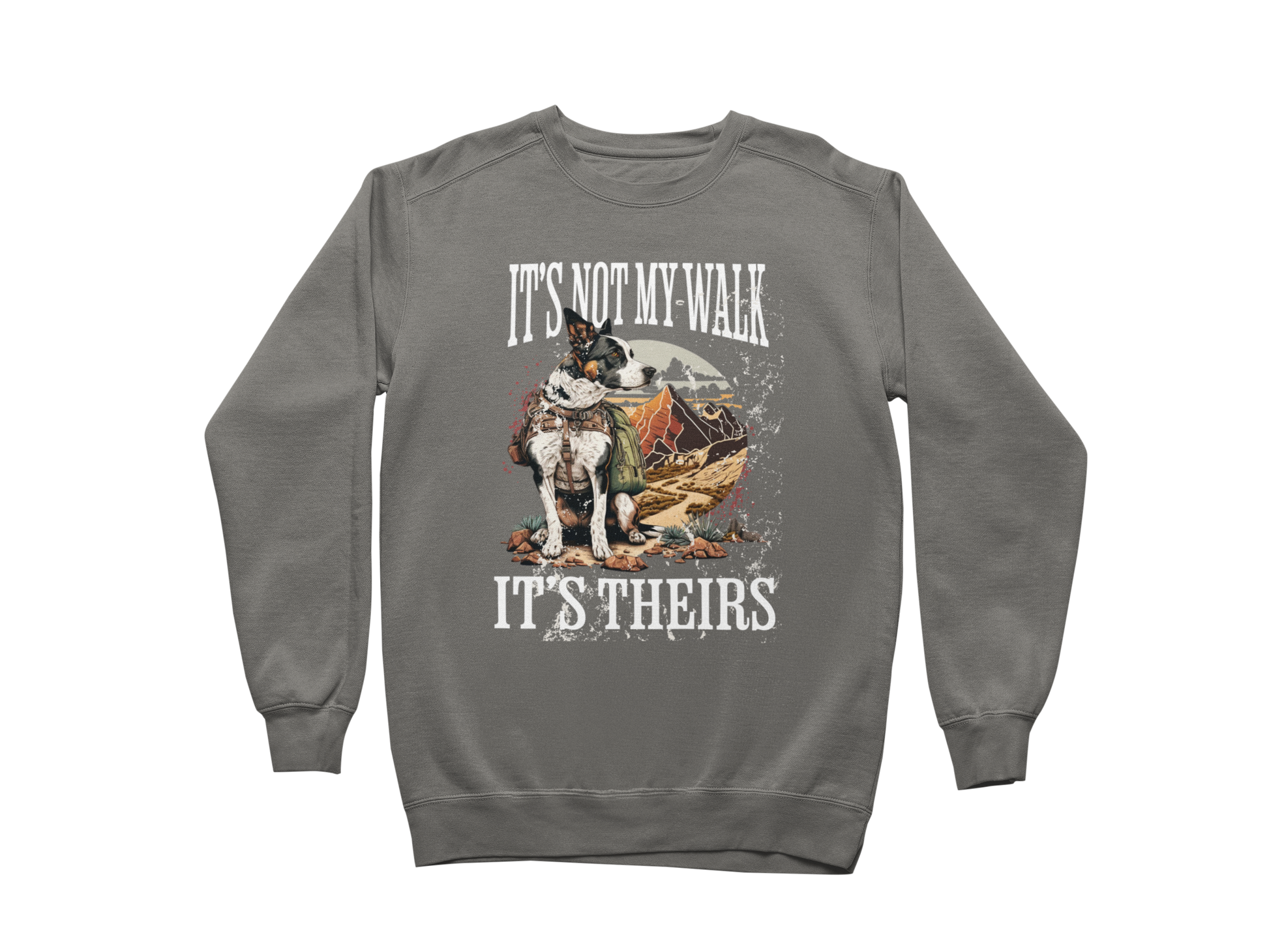 If you're a dog owner, you know the truth—those daily “walks” aren’t for you. This sweatshirt says what every leash-holder is thinking, loud and clear. Featuring a rugged vintage-style graphic of a loyal pup in front of a mountain landscape, this design is perfect for the ones who hike, stroll, and stop every five feet… on command.
