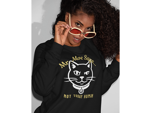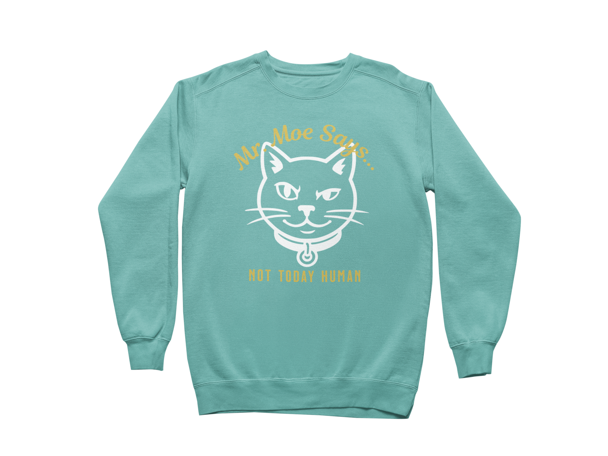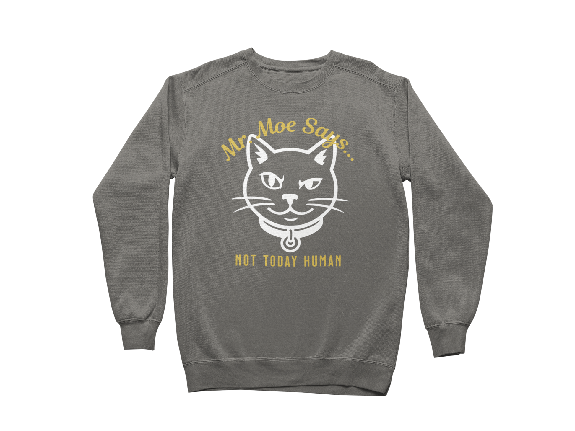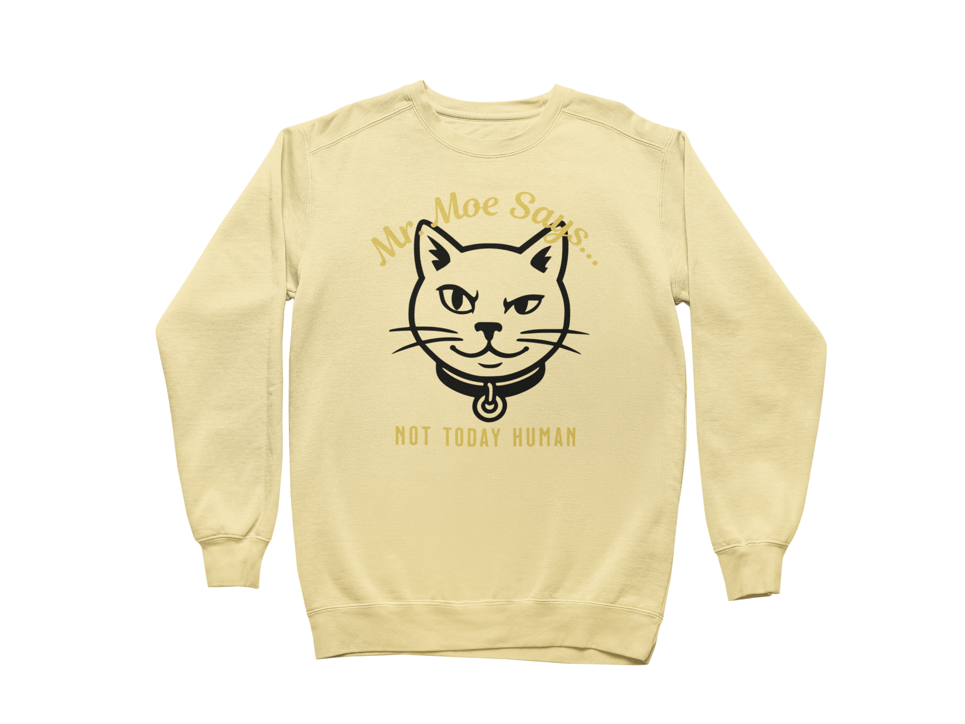 Sass level: feline. The "Not Today, Human" sweatshirt features Mr. Moe in full mood—judgy eyes and zero tolerance for nonsense. This design captures that energy every cat owner knows all too well. Perfect for introverts, nap enthusiasts, and anyone who just can’t today.